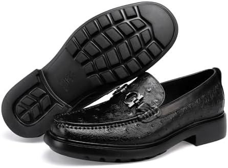 Luxury Men's Genuine Leather Dress Shoes Classic Fashion Ostrich Patterned Business Shoes Party Buckle Penny Loafer for Men, Black