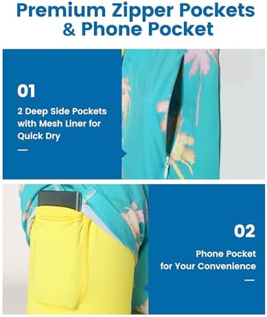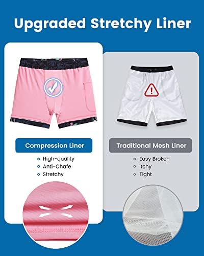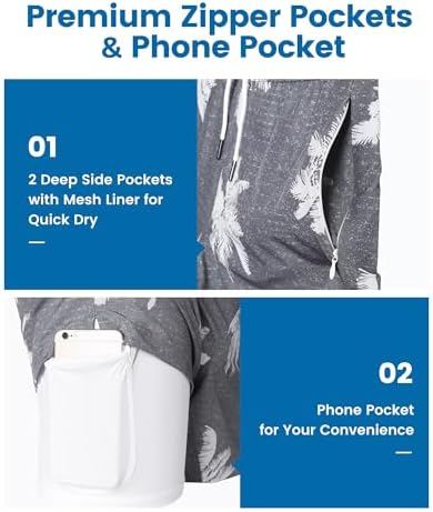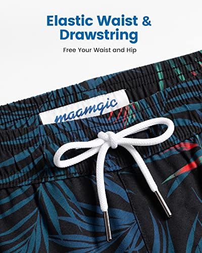 maamgic Mens Swim Trunks with Compression Liner 5" Stretch Beach Shorts Quick Dry with Zipper Pockets No-Chafing Board Shorts