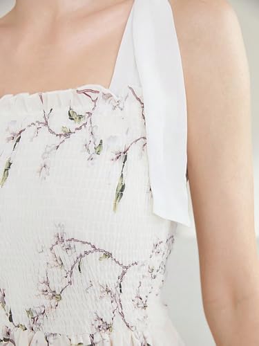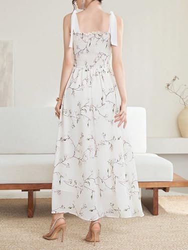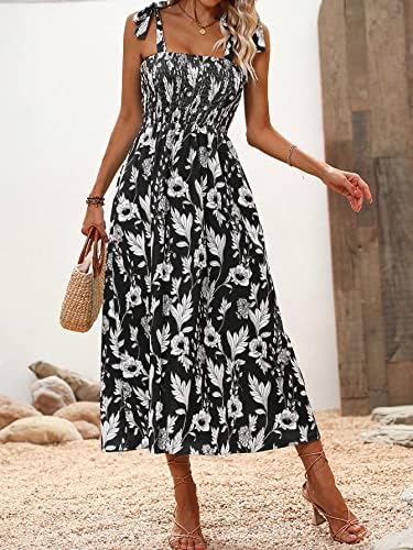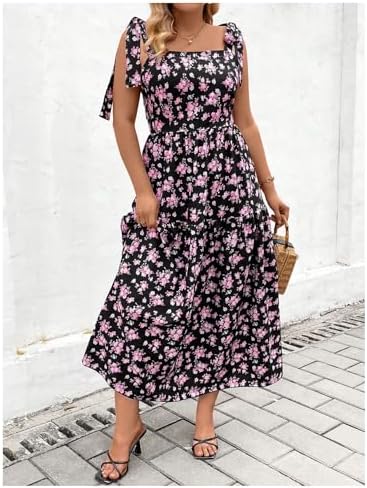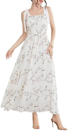 MakeMeChic Women's Summer Boho Dress Casual Floral Print Spaghetti Strap Square Neck Long Maxi Dress Beach Sun Dress