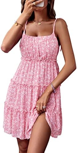 Mansy Womens 2024 Summer Floral Mini Dress Boho Flowy Skater Dresses Short Sleeveless Ruffle Spaghetti Strap Dress