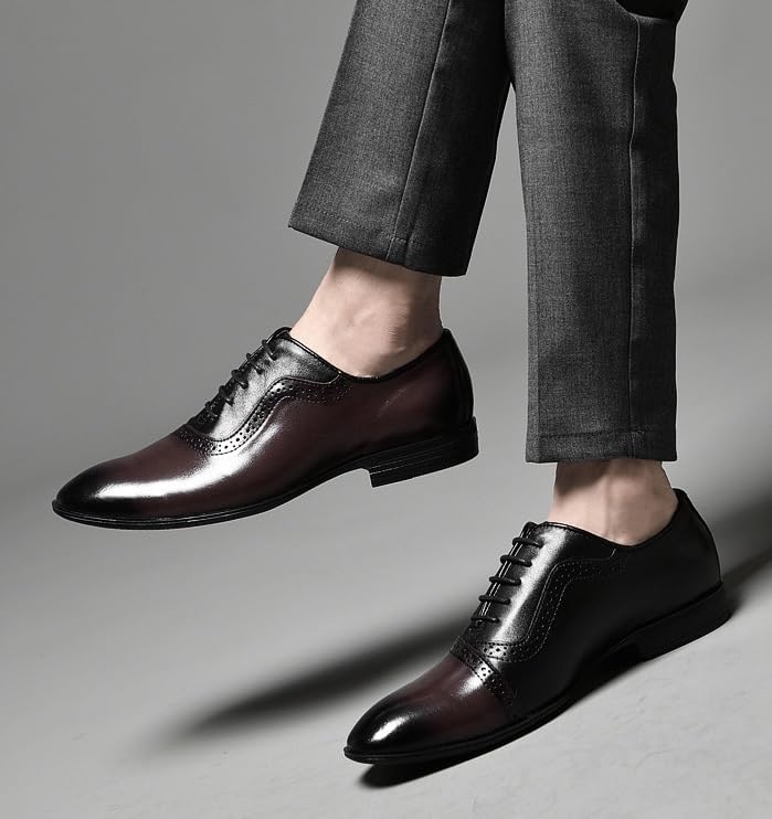 Men White Dress Shoes Lace Up Genuine Leather Oxfords Shoes Fashion Classic Pointed Toe Low Top Leather Dress Shoes(Brown,7.5)