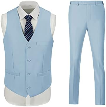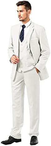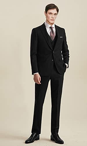 Men's 3 Piece Slim Fit Suit Set, Two Button Blazer Solid Jacket Vest Pants Wedding Business Suit