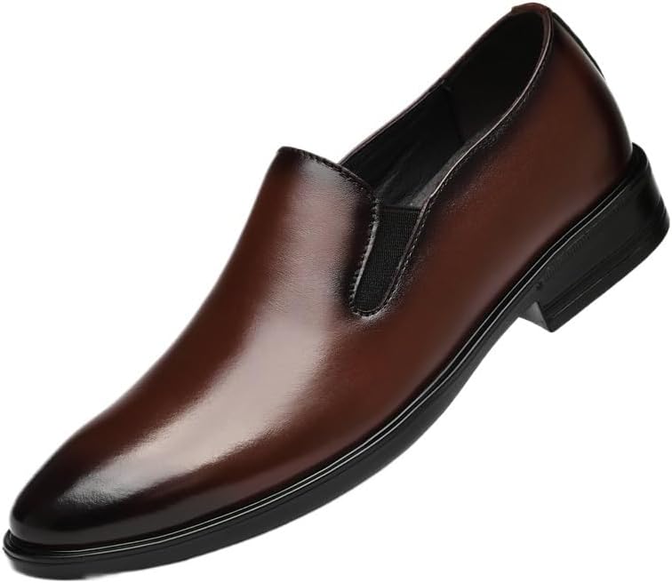 Men White Dress Shoes Lace Up Genuine Leather Oxfords Shoes Fashion Classic Pointed Toe Low Top Leather Dress Shoes(Brown,7.5)