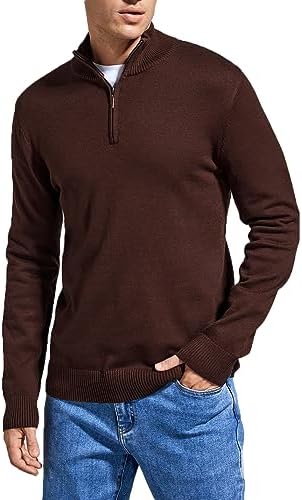 Men's Quarter-Zip Sweater Long-Sleeve Turtleneck Pullover Sweater