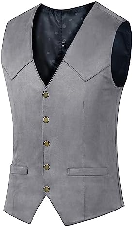 Men's Suede Leather Vest Vintage Cowboy Style Sleeveless Jacket Slim Fit Wedding Waistcoats