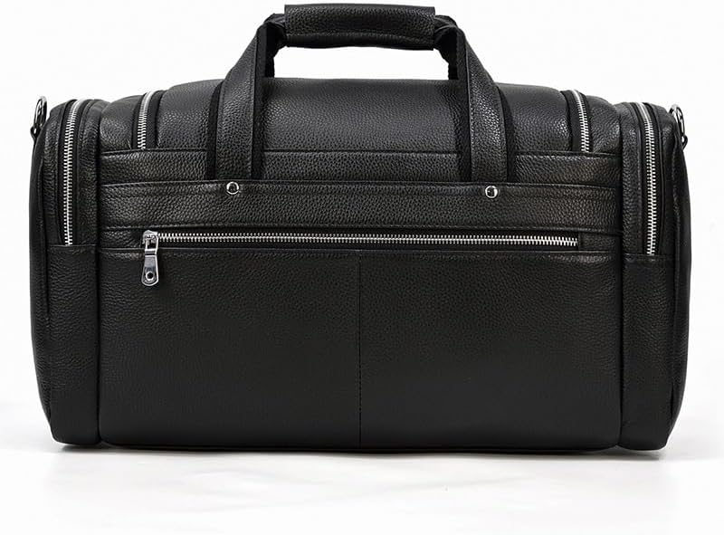 Men's Travel Bag Leather Cylinder Tote Cowhide Fashion Gym Bag Shoulder Crossbody Bag