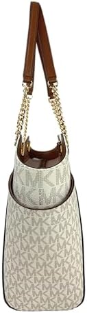 Michael Kors Jet Set Travel Large Chain Shoulder Tote bundled with Trifold Wallet (Vanilla)