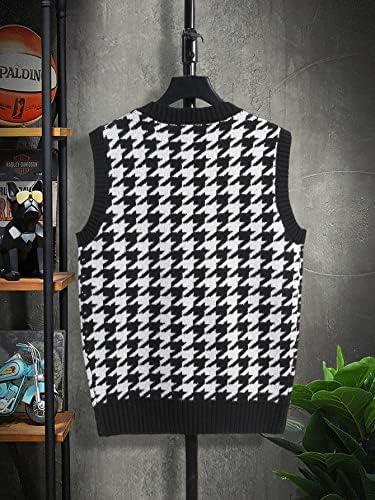 Milumia Men's Houndstooth Sweater Vest Sleeveless V Neck Casual Rib Knit Top