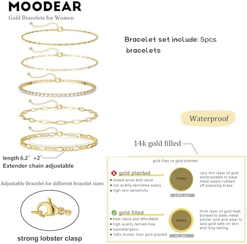 Moodear Dainty 14K Gold Plated Stack Bracelet Set for Women - Trendy Adjustable Satellite Cuff Bangle Chain Bracelet Pack Layered Jewelry Gift