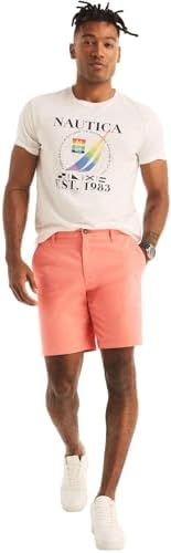 Nautica Men's Classic Fit Flat Front Stretch Solid Chino 8.5" Deck Shorts