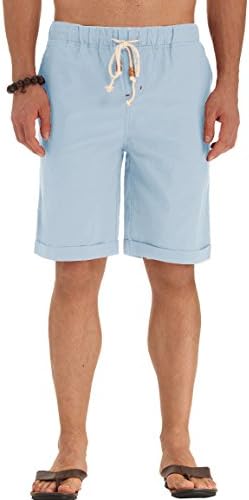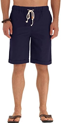 NITAGUT Men's Linen Casual Classic Fit Short Drawstring Summer Beach Shorts