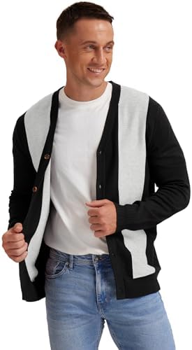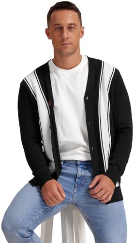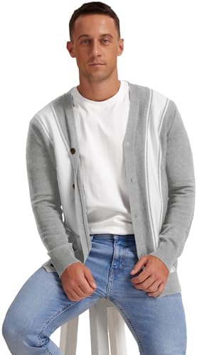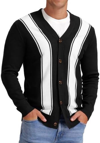 NITAGUT Men's Vintage Striped Long Sleeve Cardigan Sweater with Button V Neck Knitted Sweaters