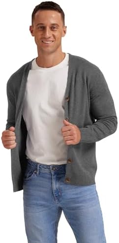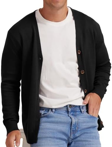 Kallspin Men's Cardigan Sweater Wool Blend Cable Knit V Neck Buttons Cardigan with Pockets