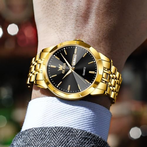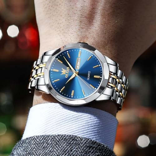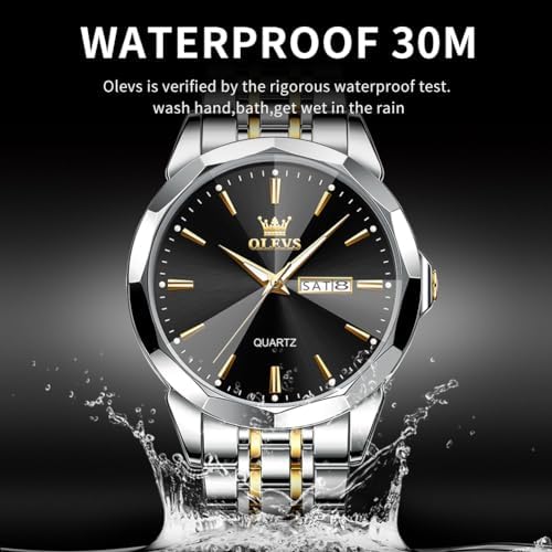 OLEVS Watch for Men Diamond Business Dress Analog Quartz Stainless Steel Waterproof Luminous Date Two Tone Luxury Casual Wrist Watch