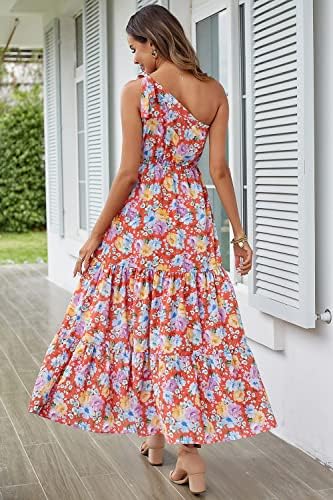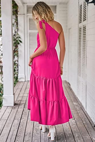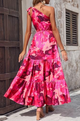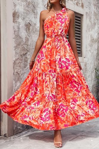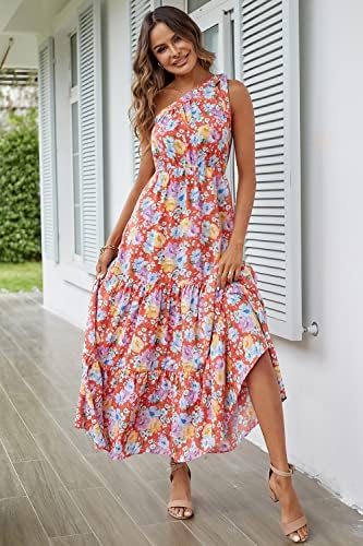 PRETTYGARDEN Womens 2024 Floral Knot One Shoulder Sleeveless Ruffle Hem Flowy Boho Dresses