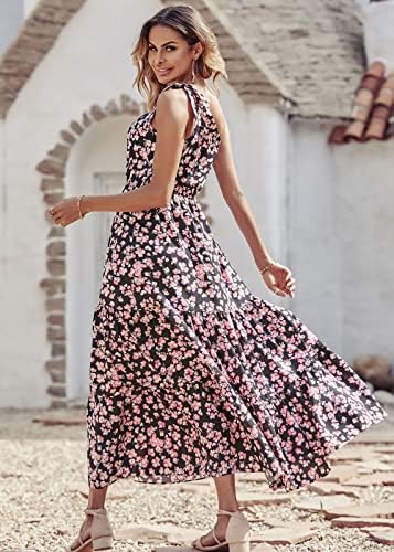 PRETTYGARDEN Women Cute Ditzy Floral Maxi Dress Long Flowy Bohemian Dresses