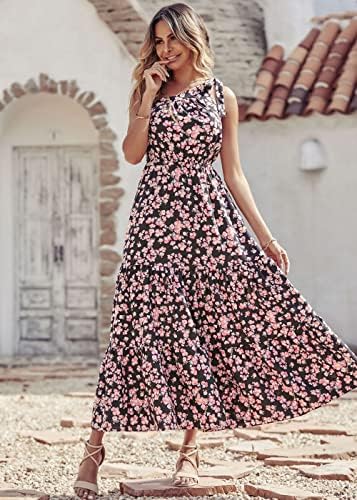 Summer Dresses for Women Beach Boho Sleeveless Vintage Floral Flowy Pocket Tshirt Tank Sundresses