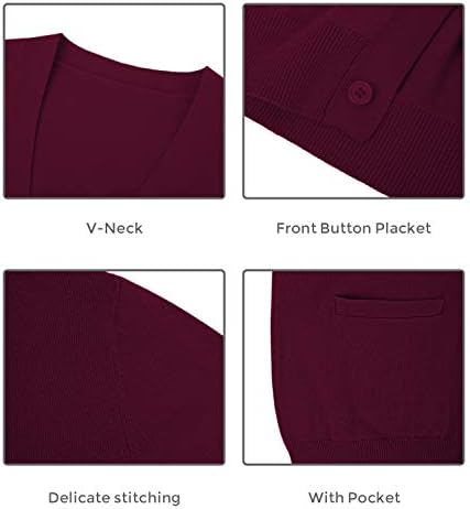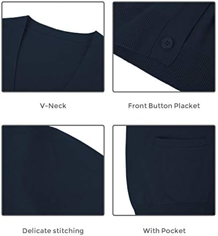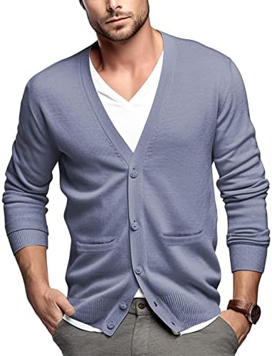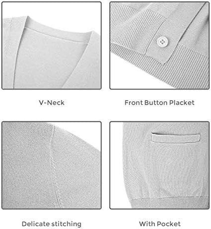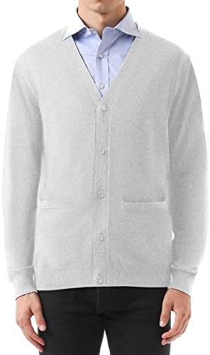 QUALFORT Mens Cardigan Sweater 100% Cotton Pockets Casual Slim Fit V-Neck Knitted Sweaters Button up