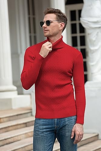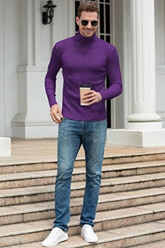 QZH.DUAO Men's Casual Slim Fit Turtleneck Pullover Sweaters with Twist Patterned