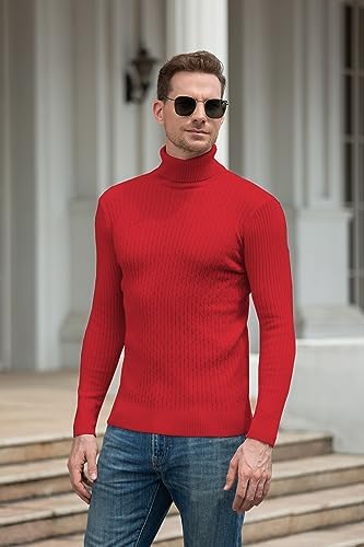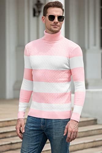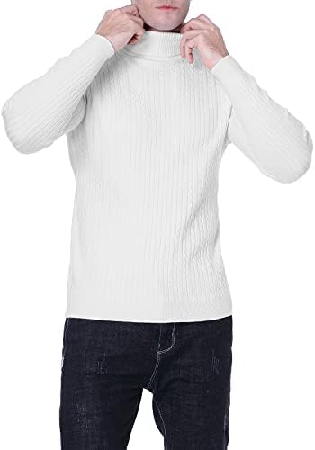 QZH.DUAO Men's Casual Slim Fit Turtleneck Pullover Sweaters with Twist Patterned