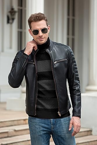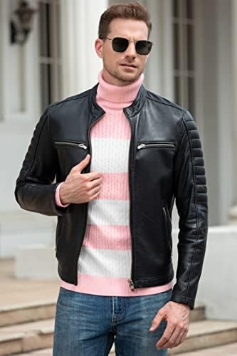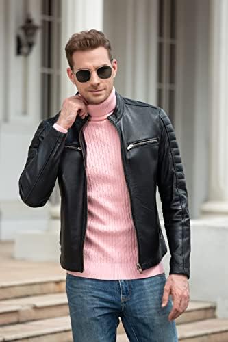 Jild Polo Collar Premium Leather Jacket Men - Old School Classic Style Everyday Wear Real Lambskin Mens Leather Jacket