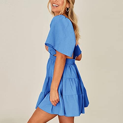 Shy Velvet Women's Summer Dress Square Neck Short Sleeves Crossover Waist Casual Party Mini Dress