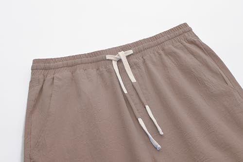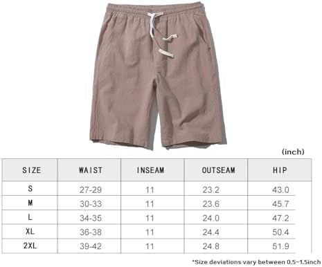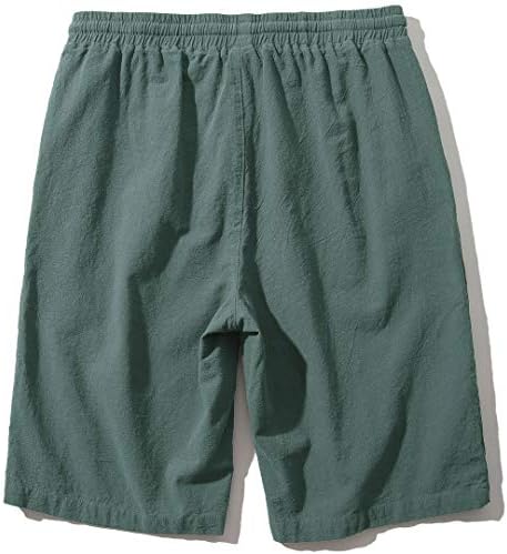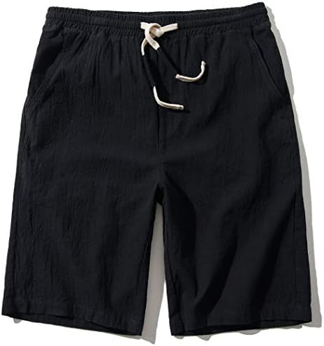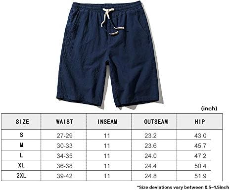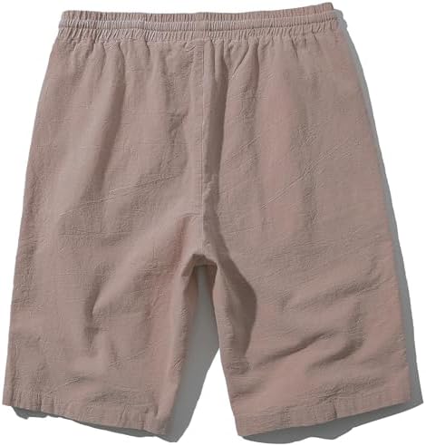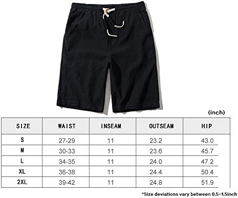 SIR7 Men's Linen Casual Classic Fit 11 Inch Inseam Elastic Waist Shorts with Drawstring