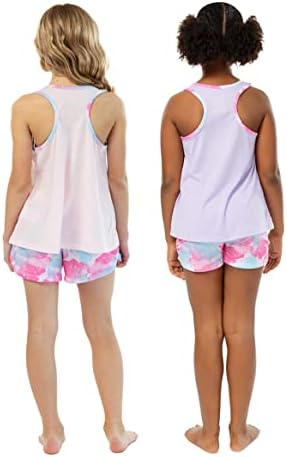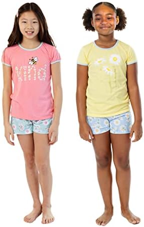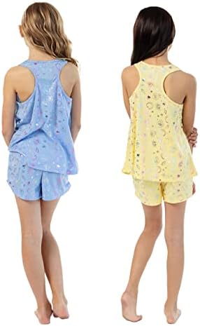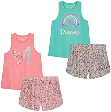 Sleep On It Girls Pajamas Short Sets 4 Piece Tank Top and Short Sleeve Summer Sleepwear for Kids (2 Full Sets)