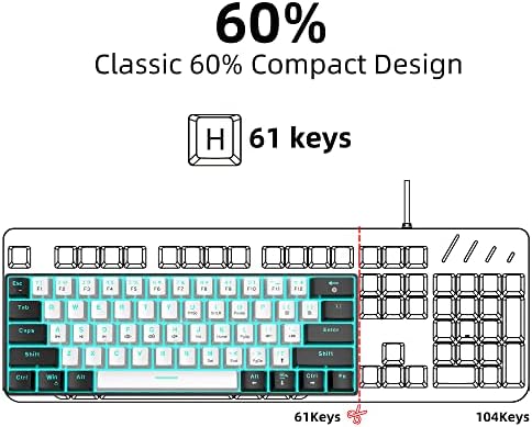 Snpurdiri 60% Wired Mechanical Keyboard, Mini Gaming Keyboard with 61 Red Switches Keys for PC, Windows XP, Win 7, Win 10 (Black-Red, Red Switches)