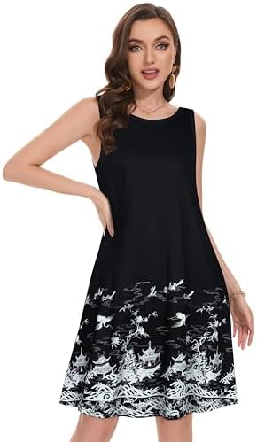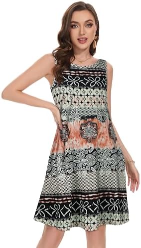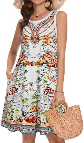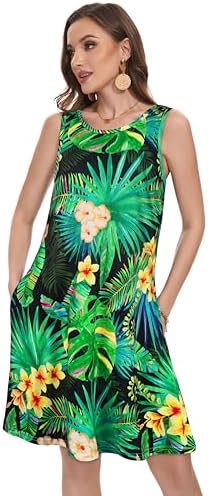 Summer Dresses for Women Beach Boho Sleeveless Vintage Floral Flowy Pocket Tshirt Tank Sundresses
