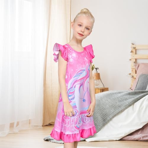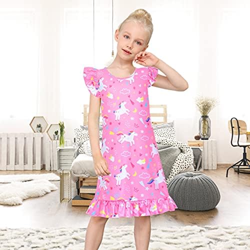 Sylfairy 2pcs Girls Nightgowns, Unicorn Nightgown Princess Pajama Dresses for Girls Sleepwear Nightie