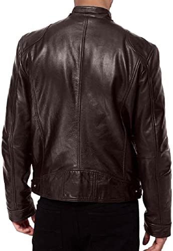 Fahsyee Leather Jackets for Men, Faux Bomber Jacket Men Motorcycle Lapel Asymmetric Zip-Up Blet Slim Fit Biker Coat