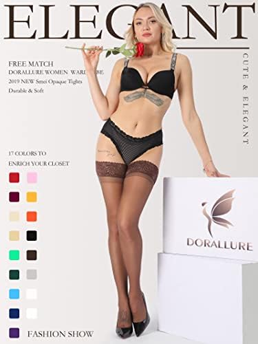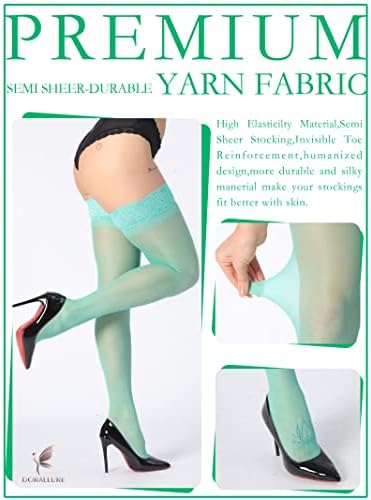 Thigh High Stockings Silicone Lace Top Stay Up Silky Semi Sheer Pantyhose for Women Hold Up Nylon