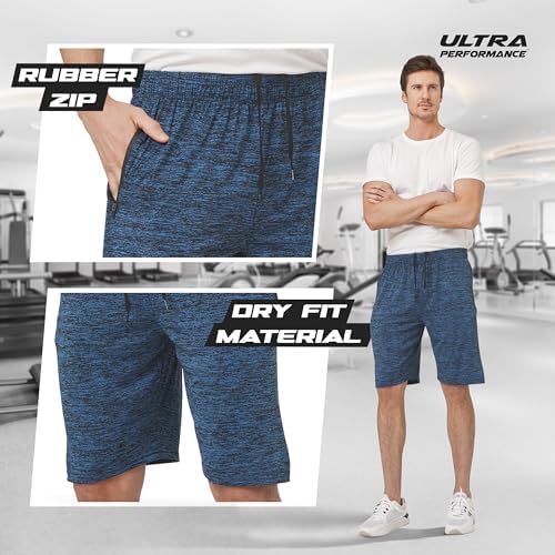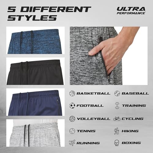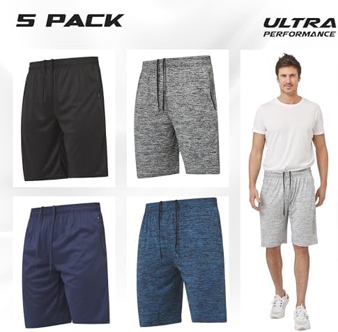 Ultra Performance Mens 5 Pack Athletic Running Shorts, Basketball Gym Workout Shorts for Men with Zippered Pockets