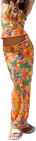EOSIEDUR Women's Chiffon Bohemian Floral Printed 2 Piece Sets Crop Cami Top & Split Beach Party Maxi Dress