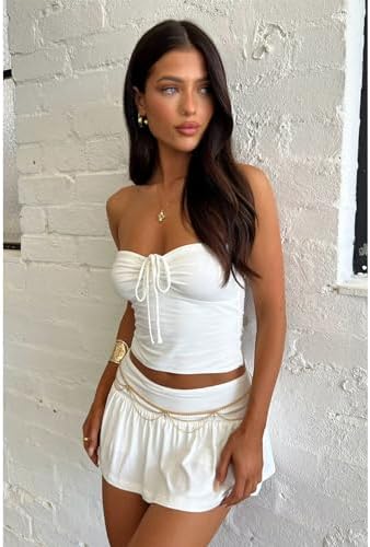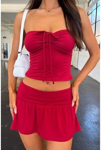 Women 2 Piece Mini Skirts Set Summer Sexy Y2k Going Out Sleeveless Strapless Crop Tops Low Waist Short Skort Skirt