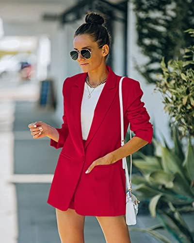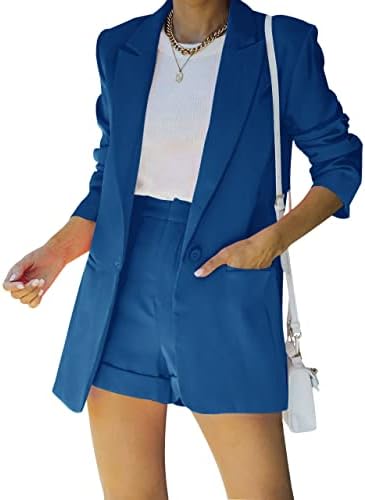 Women's 2 Piece Open Front Long Sleeve Blazer and Solid Short Pants Suit Sets