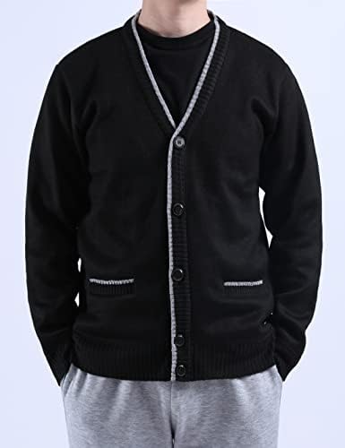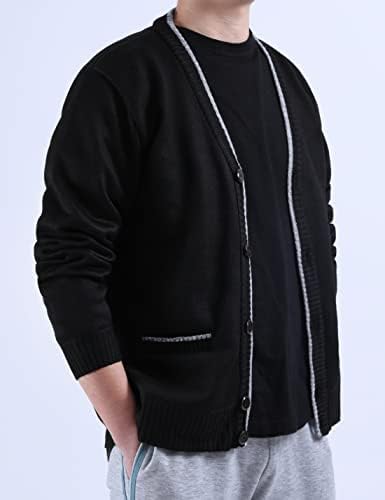 Yeokou Men's Shawl Collar Cardigans Slim Fit Button Cable Knit Black Sweater Pockets