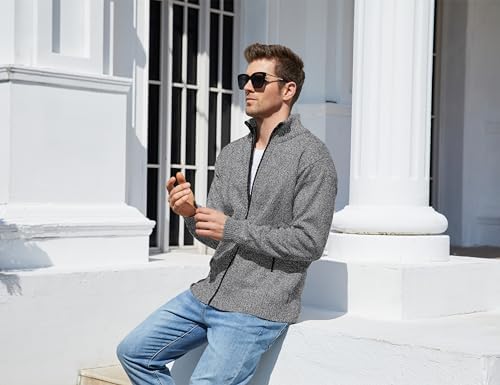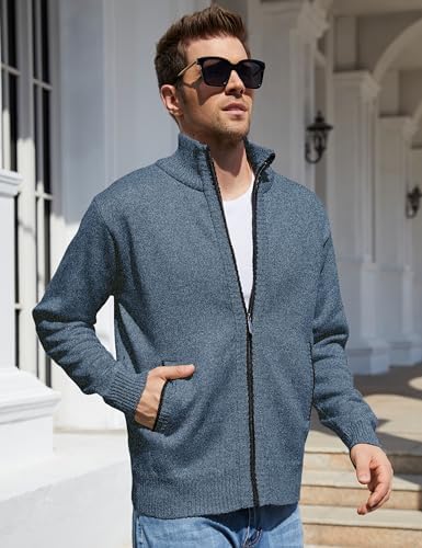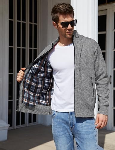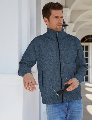 Kallspin Men's Cardigan Sweater Wool Blend Cable Knit V Neck Buttons Cardigan with Pockets