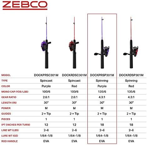 Zebco Dock Demon Spinning Reel or Spincast Reel and Fishing Rod Combo, 30-Inch Durable Fiberglass Rod, QuickSet Anti-Reverse Fishing Reel